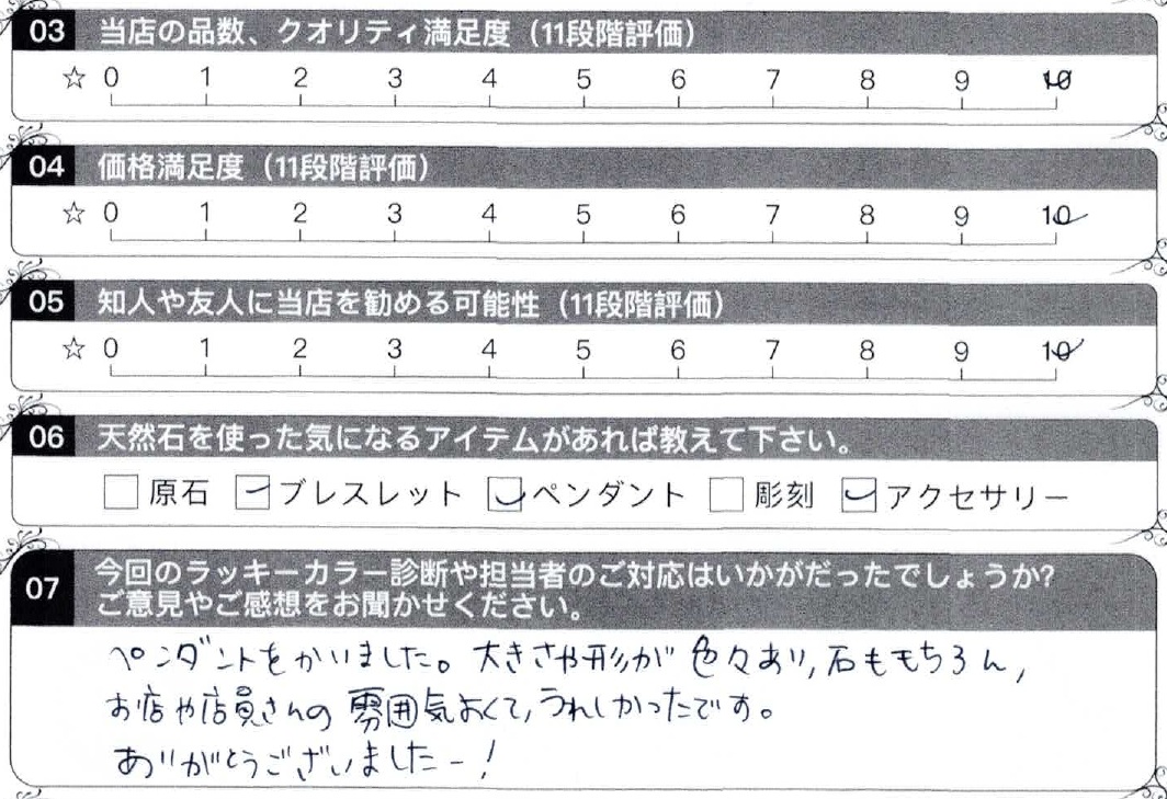 - 07,今回のラッキーカラー診断や担当者のご対応はいかがでしたでしょうか?