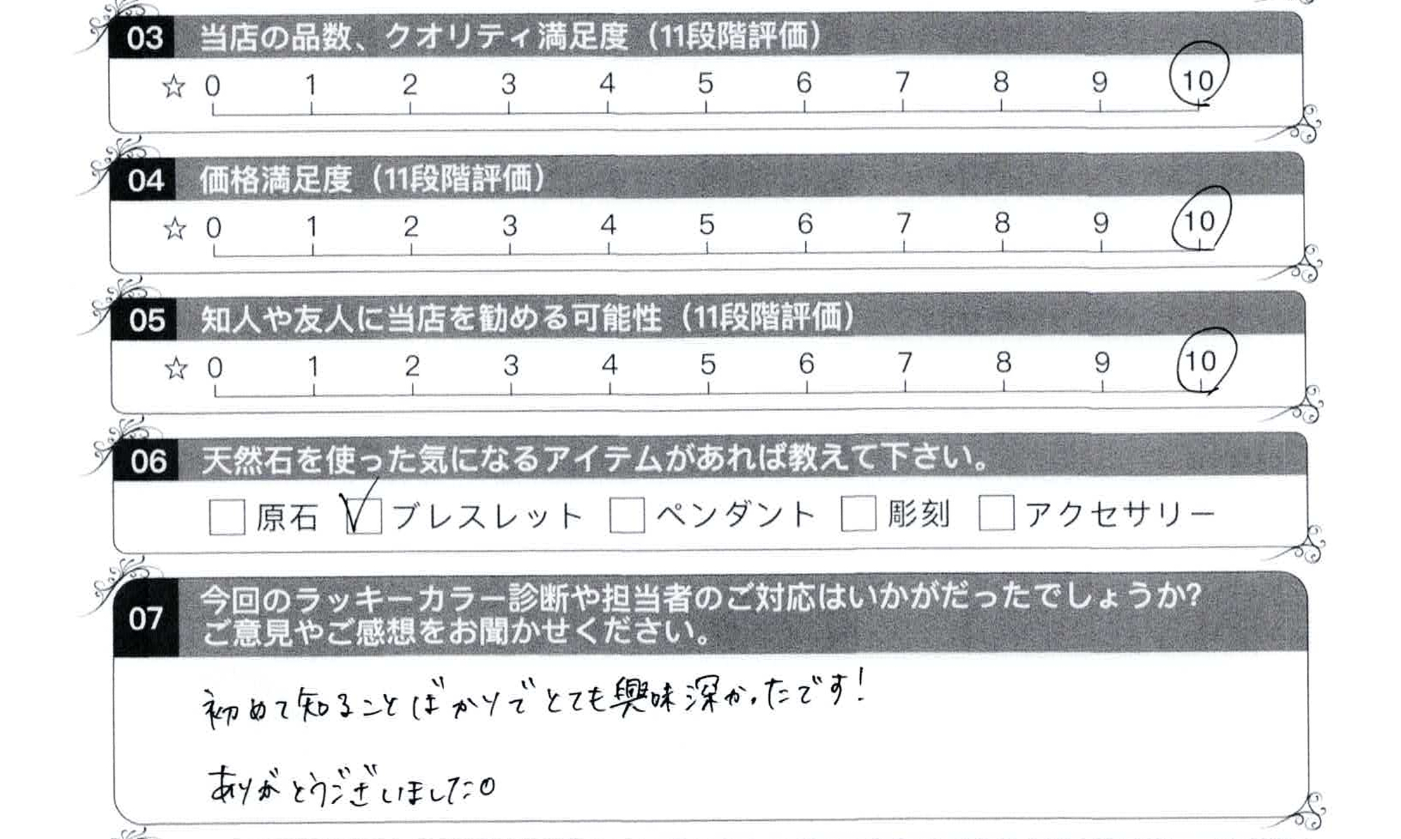- 07,今回のラッキーカラー診断や担当者のご対応はいかがでしたでしょうか?