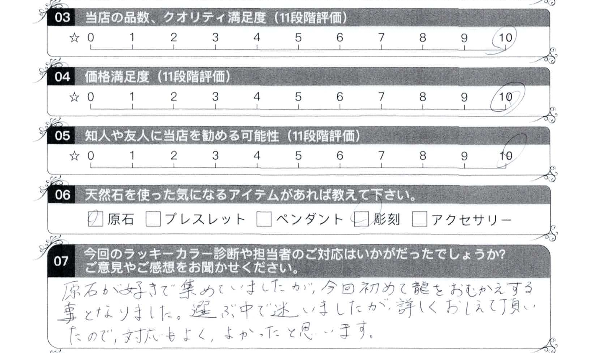 - 07,今回のラッキーカラー診断や担当者のご対応はいかがでしたでしょうか?