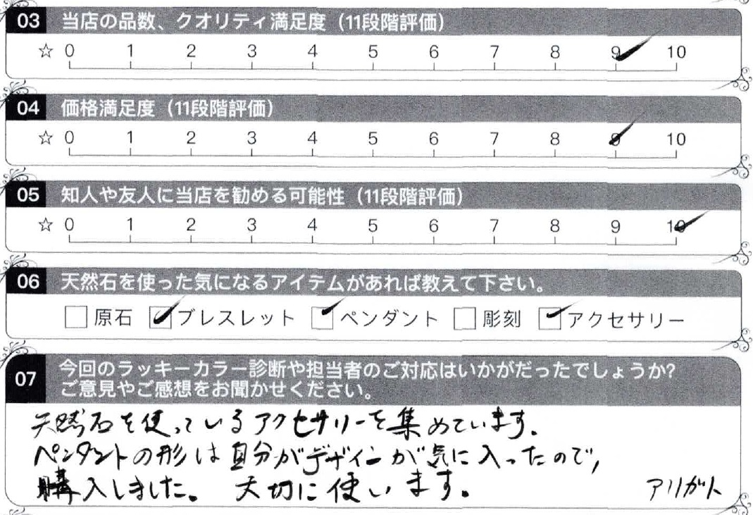 - 07,今回のラッキーカラー診断や担当者のご対応はいかがでしたでしょうか?