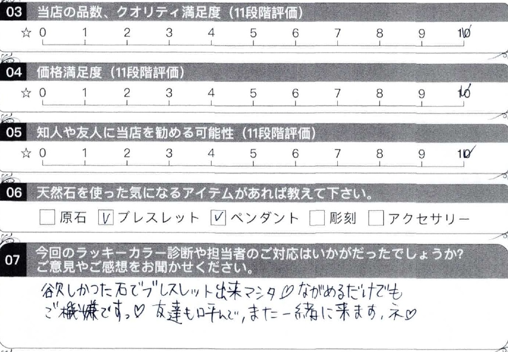 - 07,今回のラッキーカラー診断や担当者のご対応はいかがでしたでしょうか?