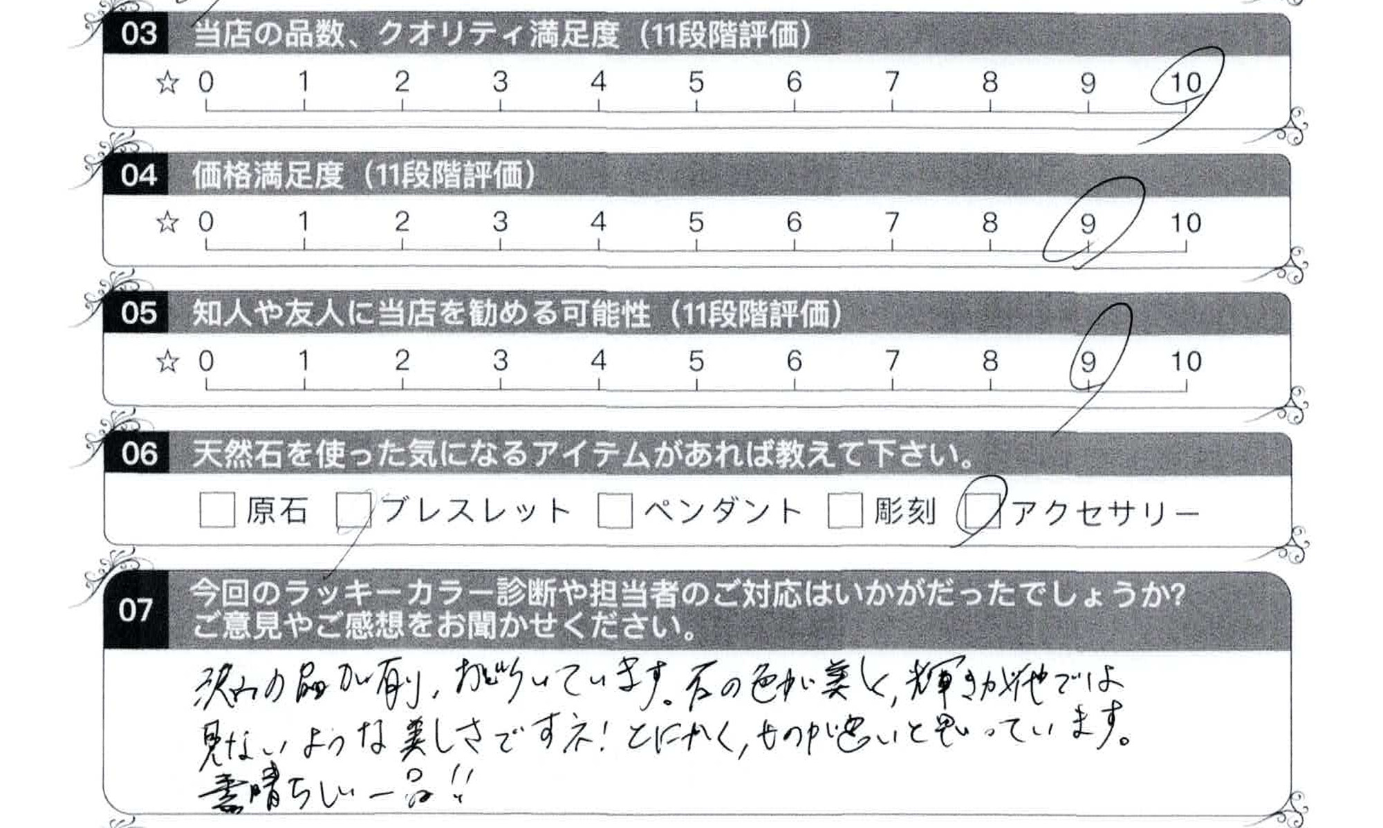 - 07,今回のラッキーカラー診断や担当者のご対応はいかがでしたでしょうか?
