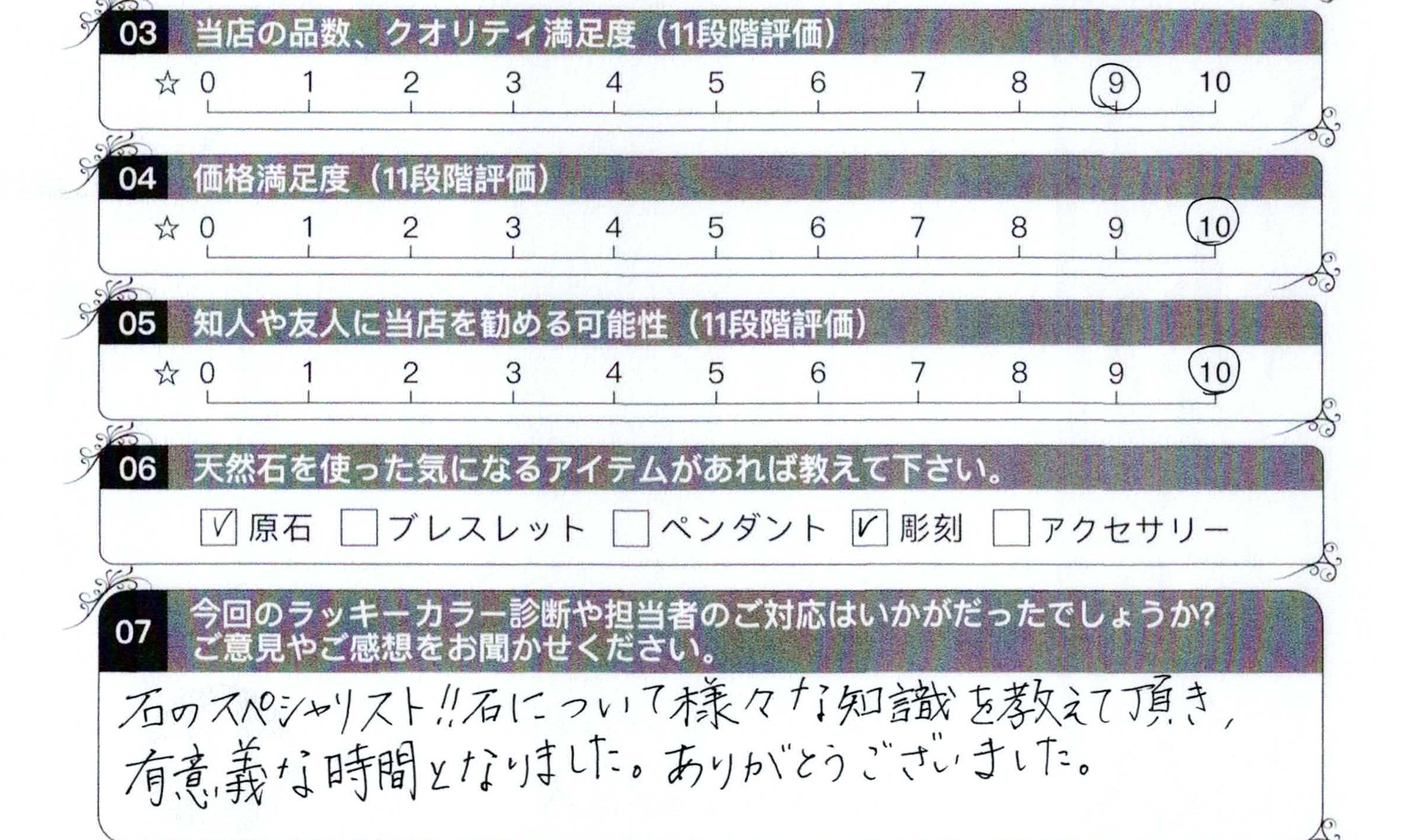 - 07,今回のラッキーカラー診断や担当者のご対応はいかがでしたでしょうか?